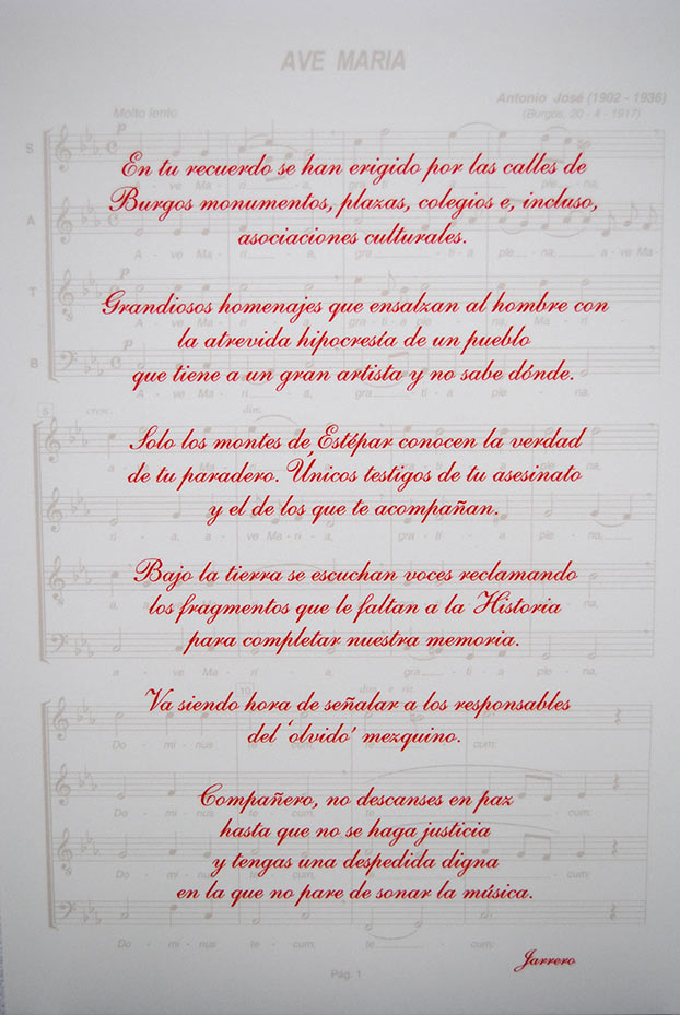 El planteamiento de la obra pretende reivindicar la figura y la memoria de Antonio José (1902-1936) incidiendo en el hecho de que su cadáver está aún enterrado en una fosa común en Estépar.